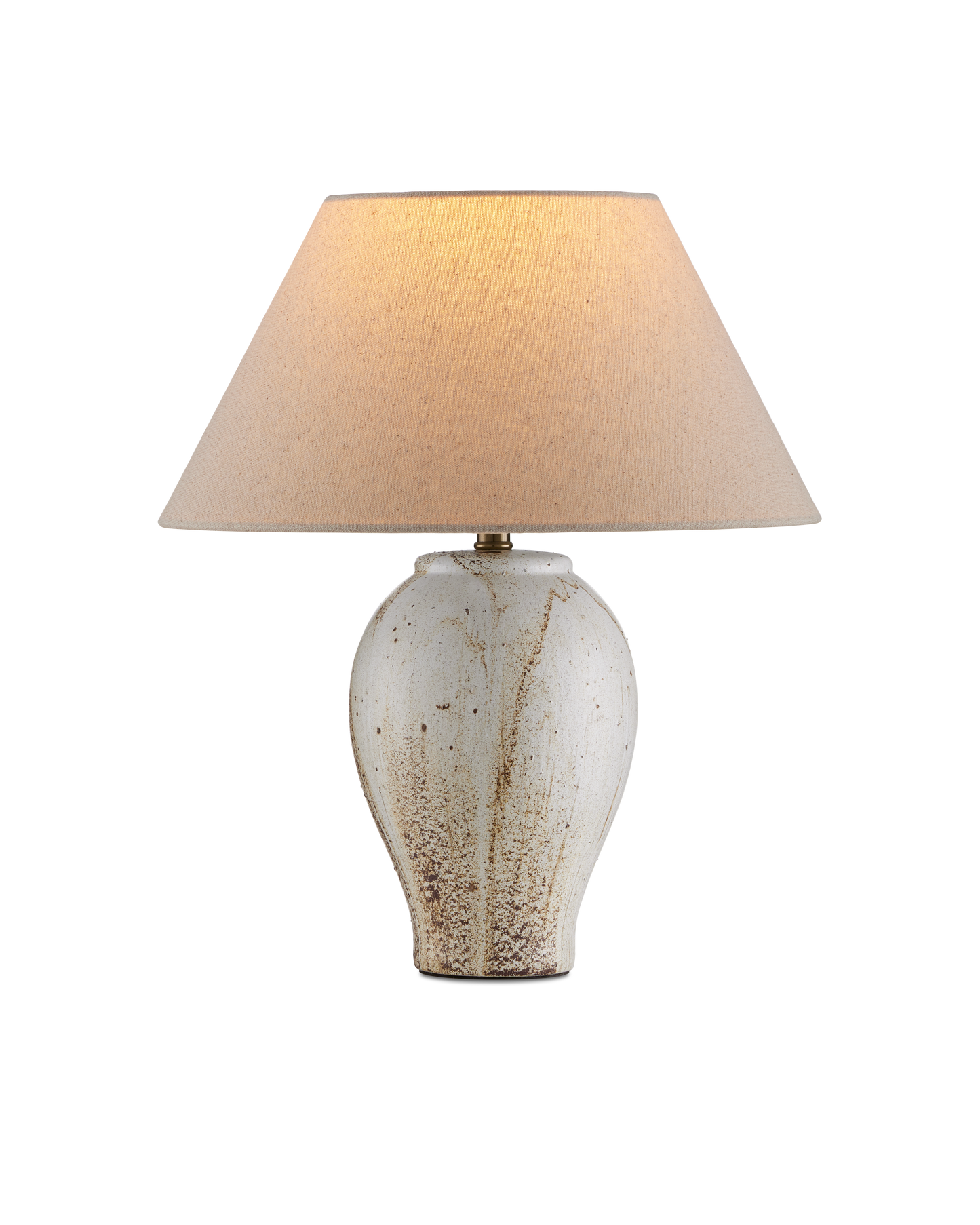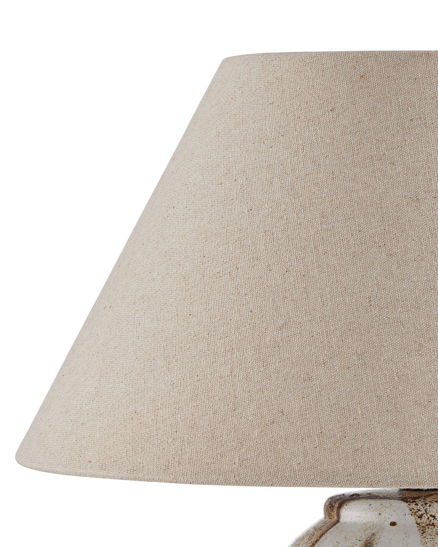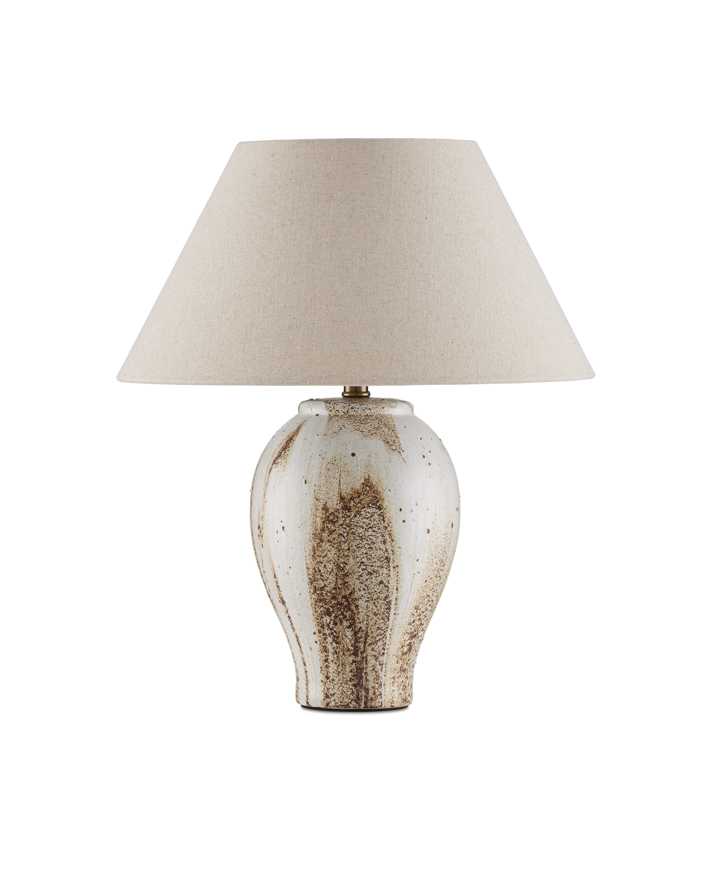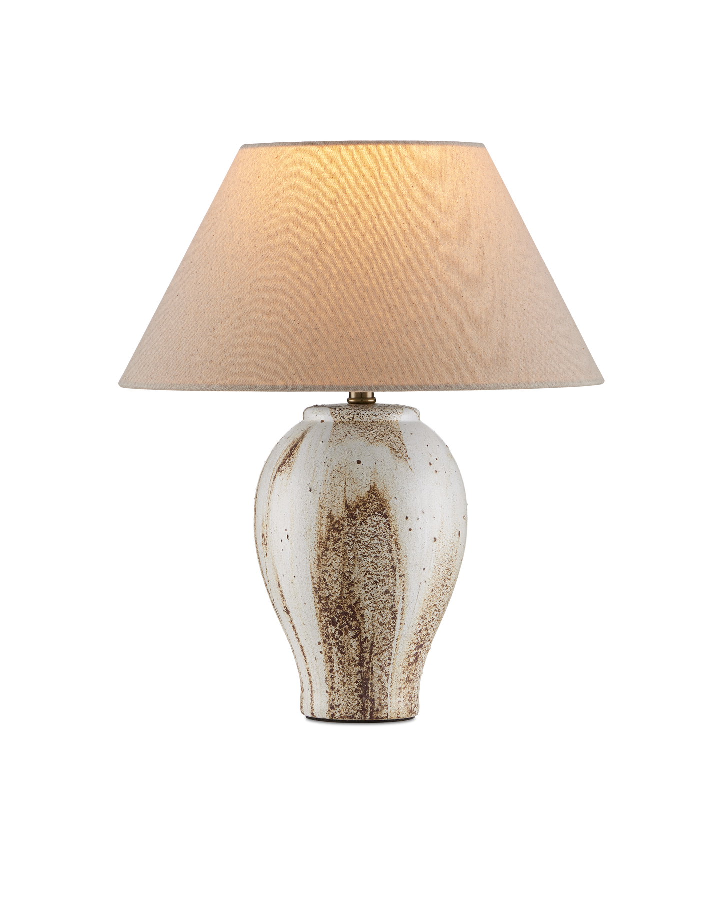 The Latte Beige Table Lamp is made of ceramic in a mix of beige, off-white, and brown glazing that mimics the way cream swirls into coffee. Because glazing ceramic is an artisanal process, this design will vary from piece to piece. The warmth of the empire shade when the lights are switched on draw out the tan tones in the lamp's body.
