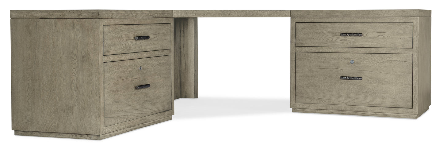 Regular price $4,075.00The stylish symmetry of the Linville Falls Corner Desk will bring serenity to your life and productivity to your work. Capturing the essence of nature’s organic color palette on a clean-lined, simple silhouette, the unit is crafted of Oak Veneers with a soft smoked gray Mink finish, and combines a corner top with two flanking 36-inch tops. The unit’s functional appeal is enhanced by two lateral files with a total of four drawers, including two top utility drawers and two bottom locking file drawers with pendaflex filing systems. Fully finished on the back so it can be floated in a room.