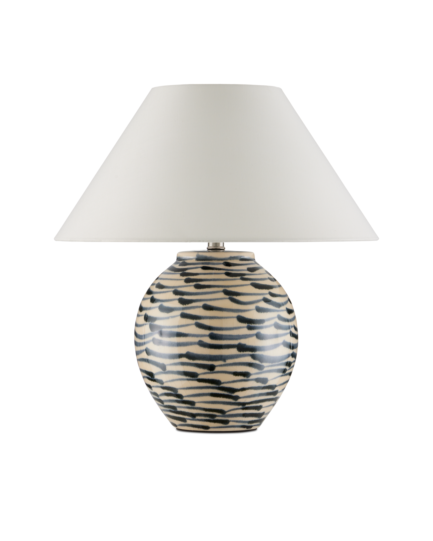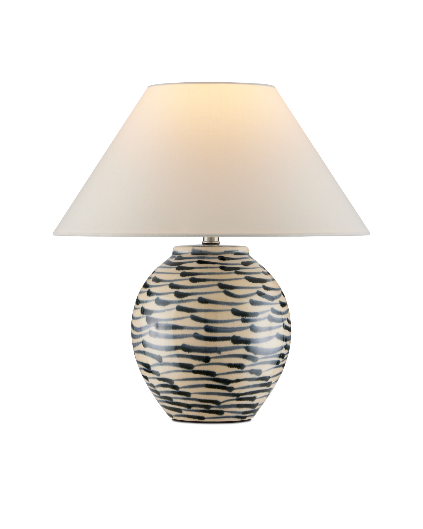 The Minnows Blue Table Lamp is swimming with personality, not merely from the streaking fish-like brush strokes on its ceramic surface, but from the crackle finish applied to the beige background beneath them. A flared empire shade adds to the Asian feel of this design. Because this lamp is hand-painted, the patterning will vary from piece to piece.