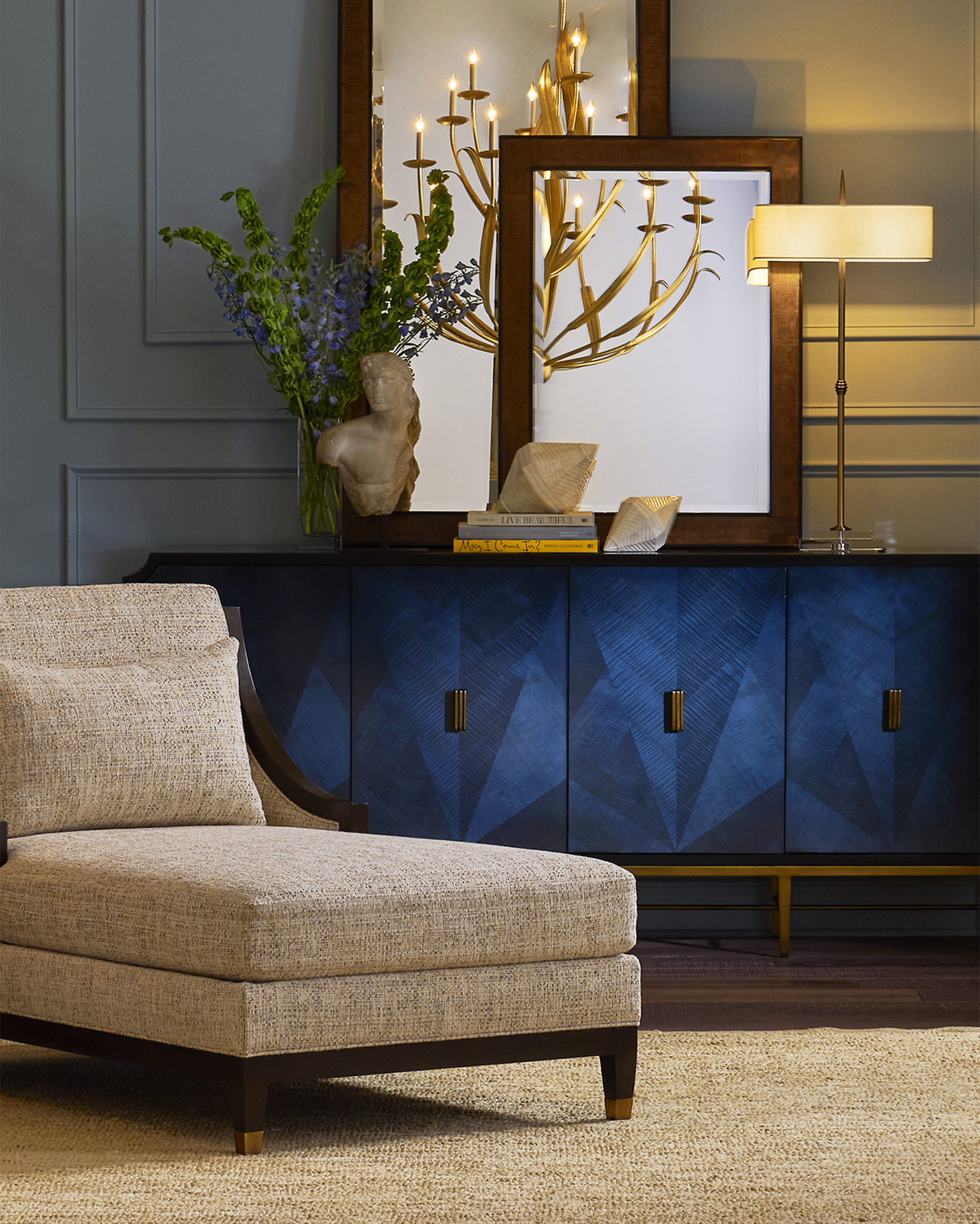 The Pavi Bone Prism Set includes two white sculptures that are the definition of artisanal, as they are handmade and covered in bone inlay. The painstaking process required to cover sculptures as organically shaped as these is quite a feat. The shell-shaped sculptures will stand out even if they become elements in a lively vignette.