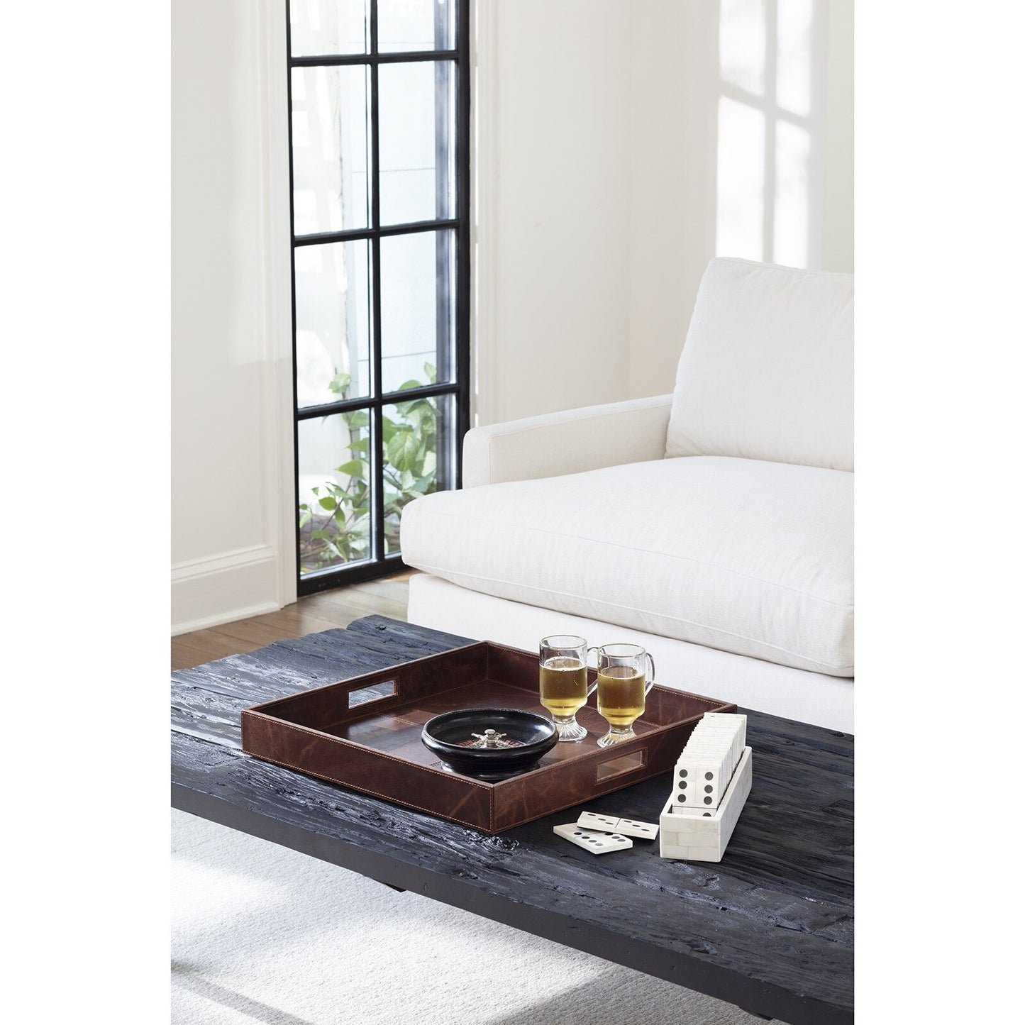 A beautiful piece of functional decor, this Domino Set is anything but ordinary. The domino pieces are real, white bone with black dots and their case is made from fragments of bone that have been shaped into tiles and inlaid by hand to create a rich mosaic look. Place on a side table, coffee table, or bar top for decor that also functions as a classic game to thrill guests.