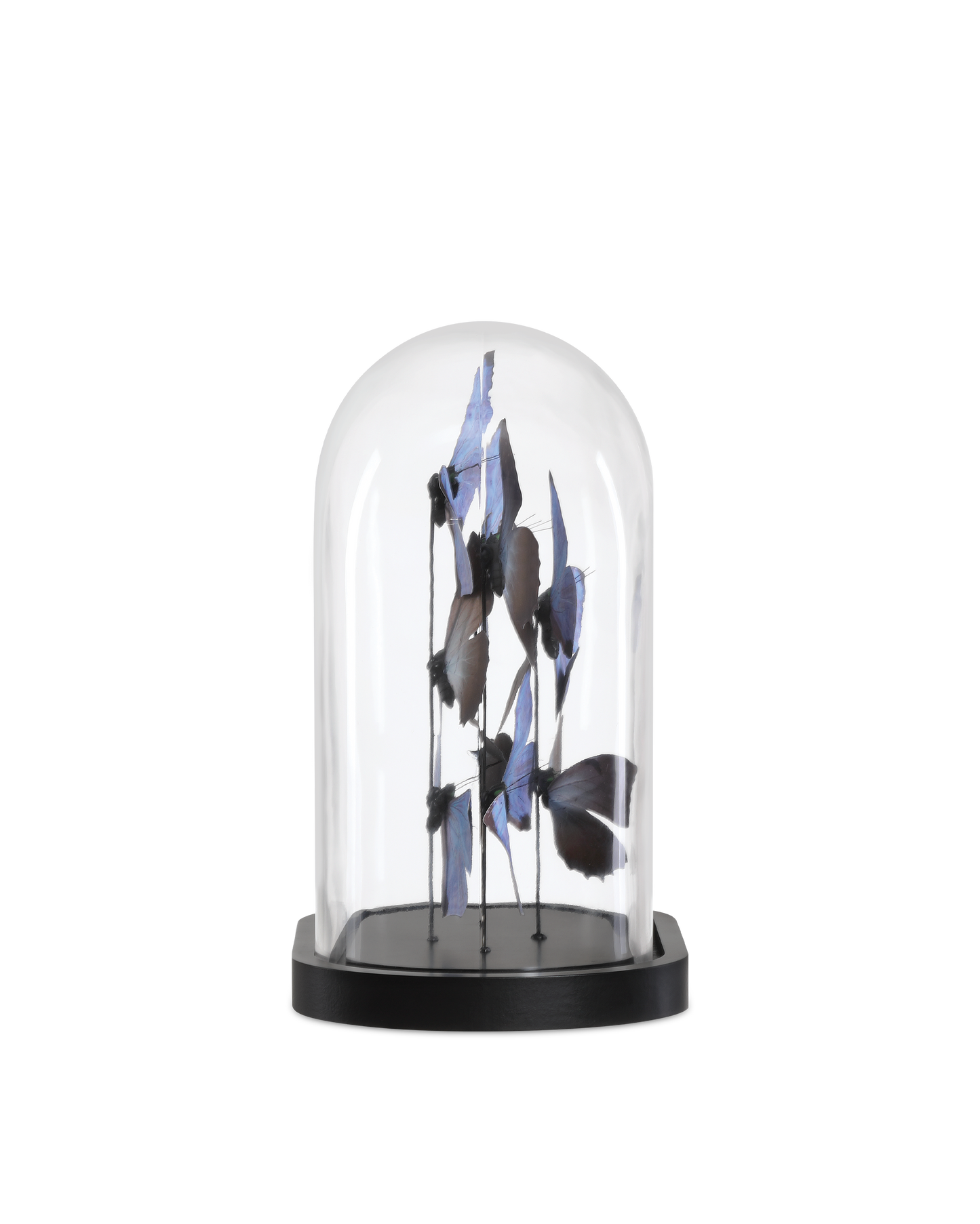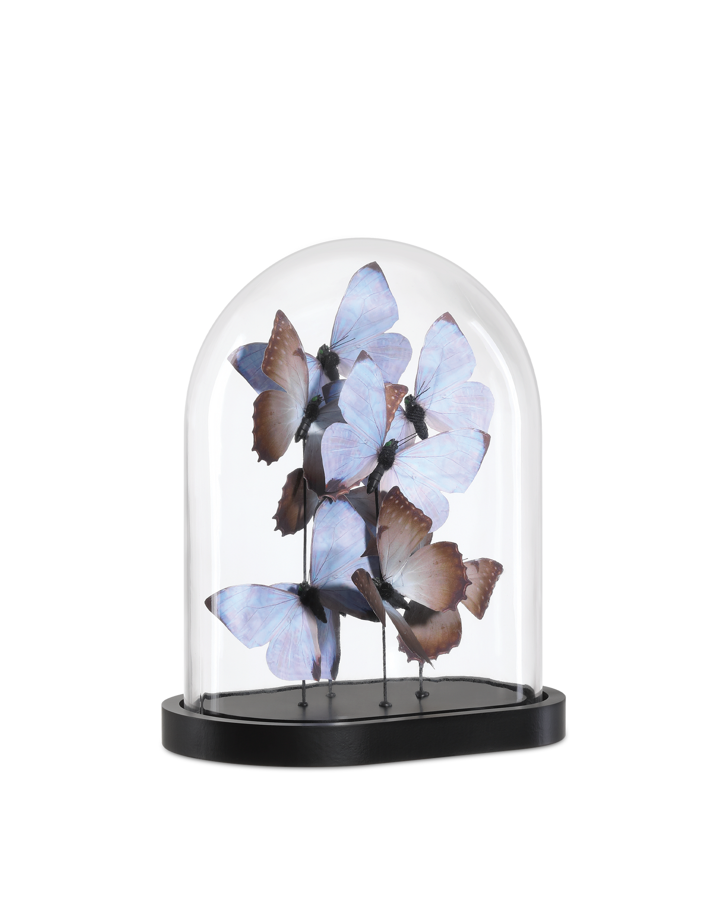 Delicately lovely, the Rue de Bac Pale Blue & Pink Medium Butterflies is a paper sculpture set within a glass dome, capturing a fleeting moment in nature with artistic elegance. Crafted from forging paper, each butterfly is meticulously shaped and arranged to appear as if it's fluttering in mid-air. Soft hues of pale blue and blush pink bring a sense of serenity to the piece, while the varying heights and angles of the butterflies create a dynamic, lifelike display.