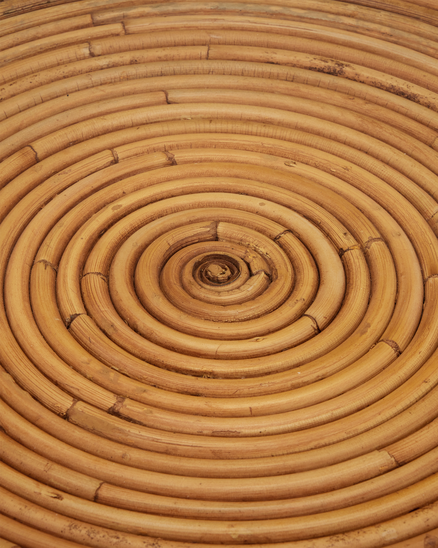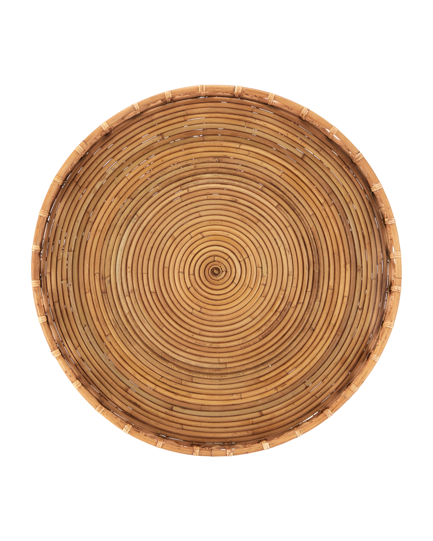 The Tegal Decorative Serving Tray is over 23 inches in diameter and has a glass inset, which makes it an ideal choice for using as a table-space on an oversized ottoman. Made of Arurog, a reed that is known for its pliability, the decorative tray is also perfect for serving, as the glass forms a protective shield on the bottom. The looping pattern on the sides forms natural handles so its easy to grip almost anywhere.