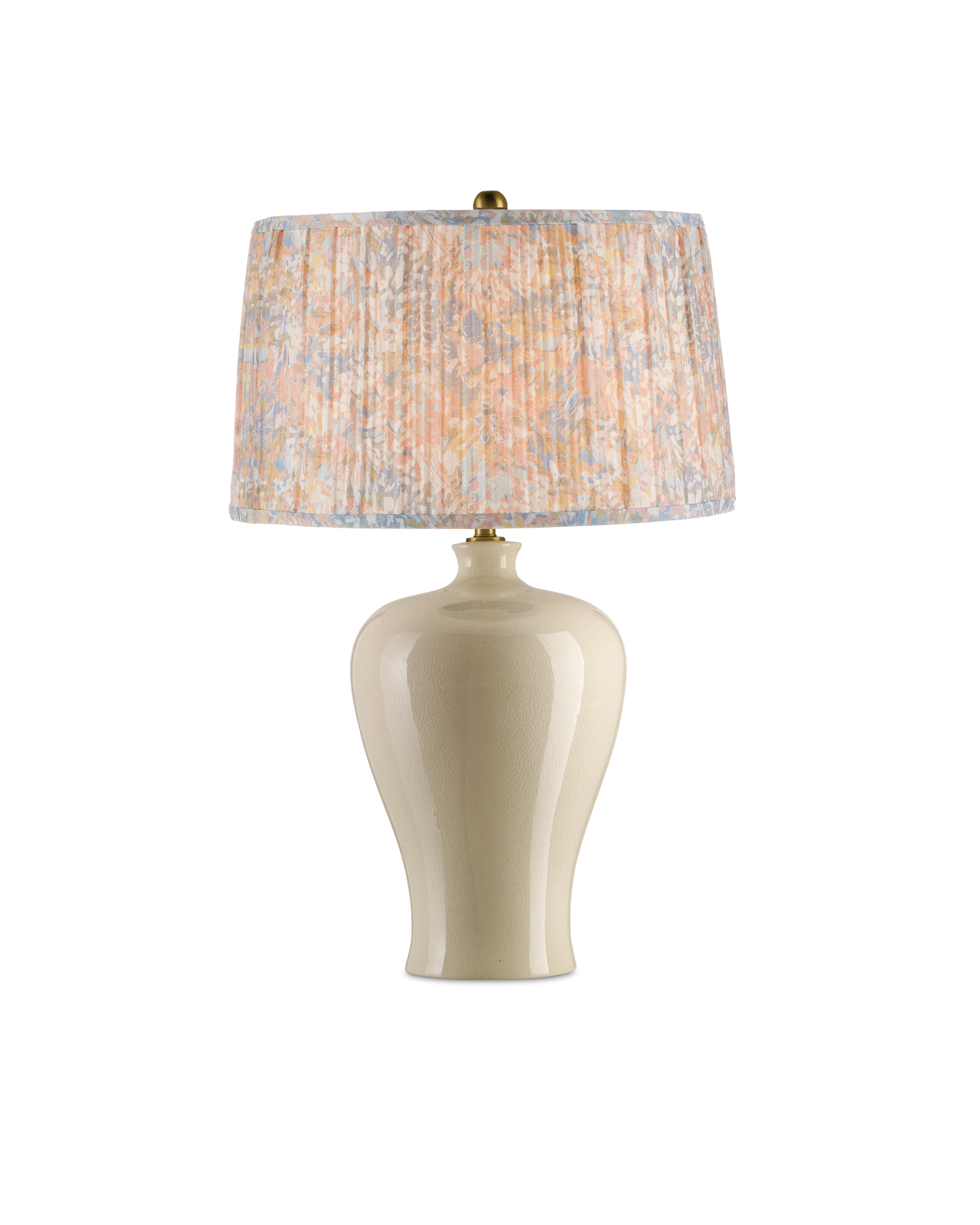 Lush wildflowers in soft pastels dance across this pleated lampshade from design partner Lacefield Designs.