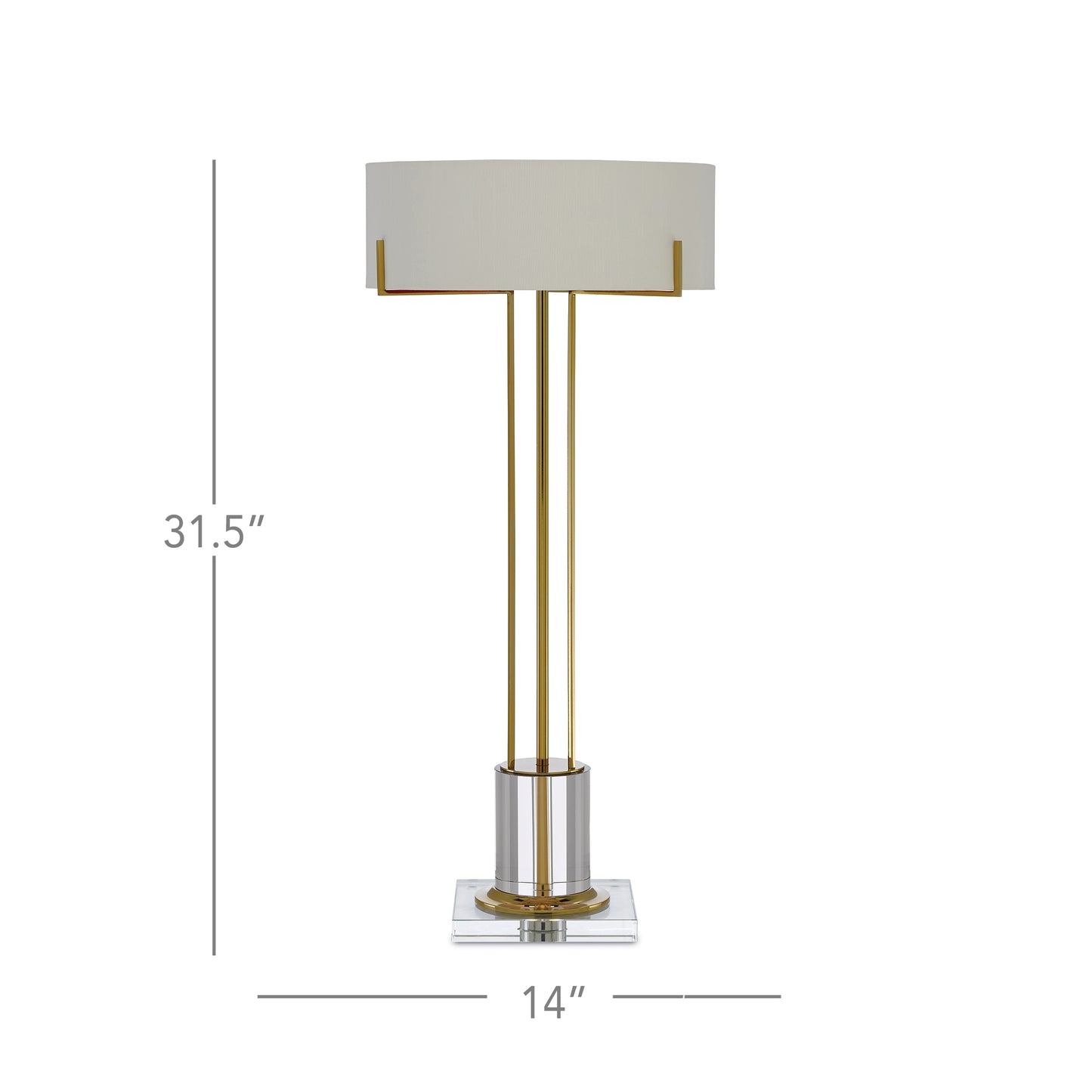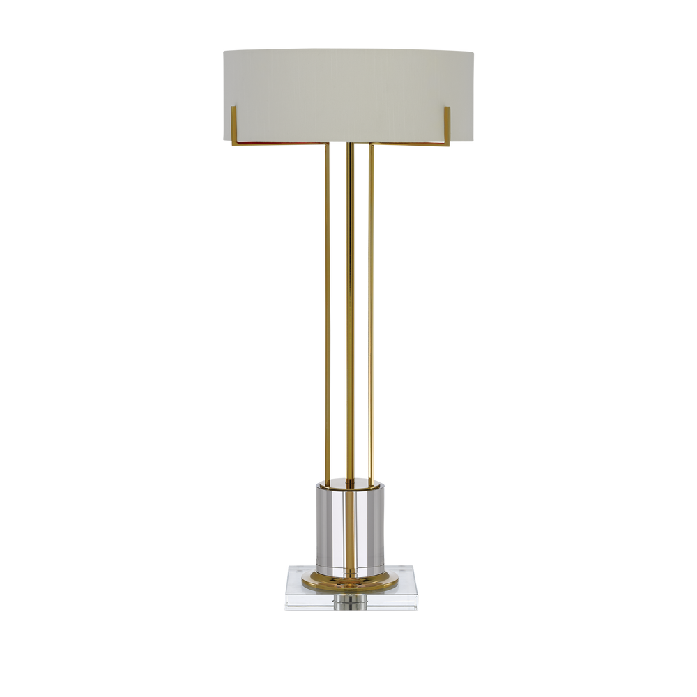 Thin ribs of metal in a polished brass finish meets luminous optic crystal to bring an ethereal feel to our Winsland Brass Table Lamp. Classic details include the architectonic configuration of the arms that flow up from the optic crystal base and the compact shade.