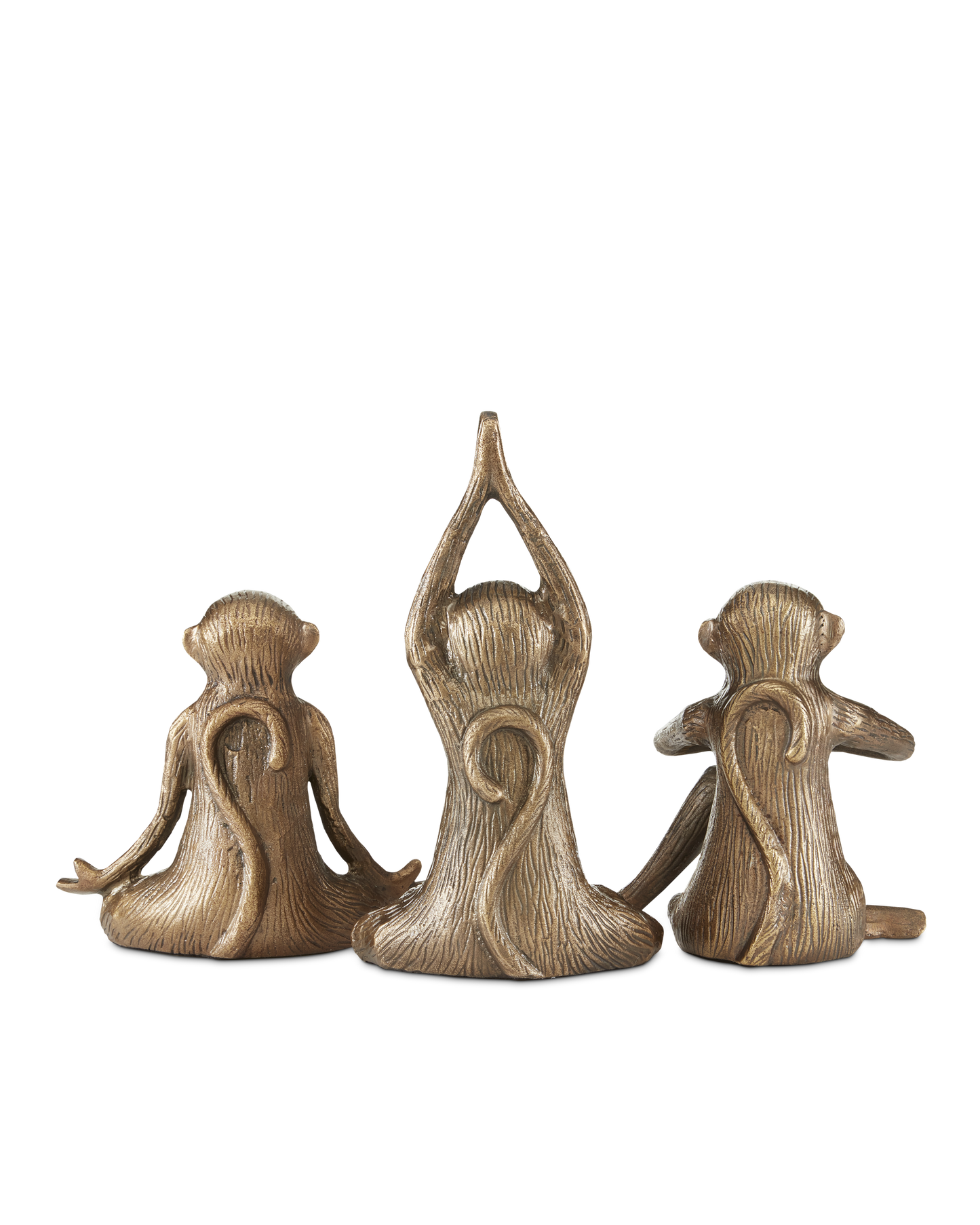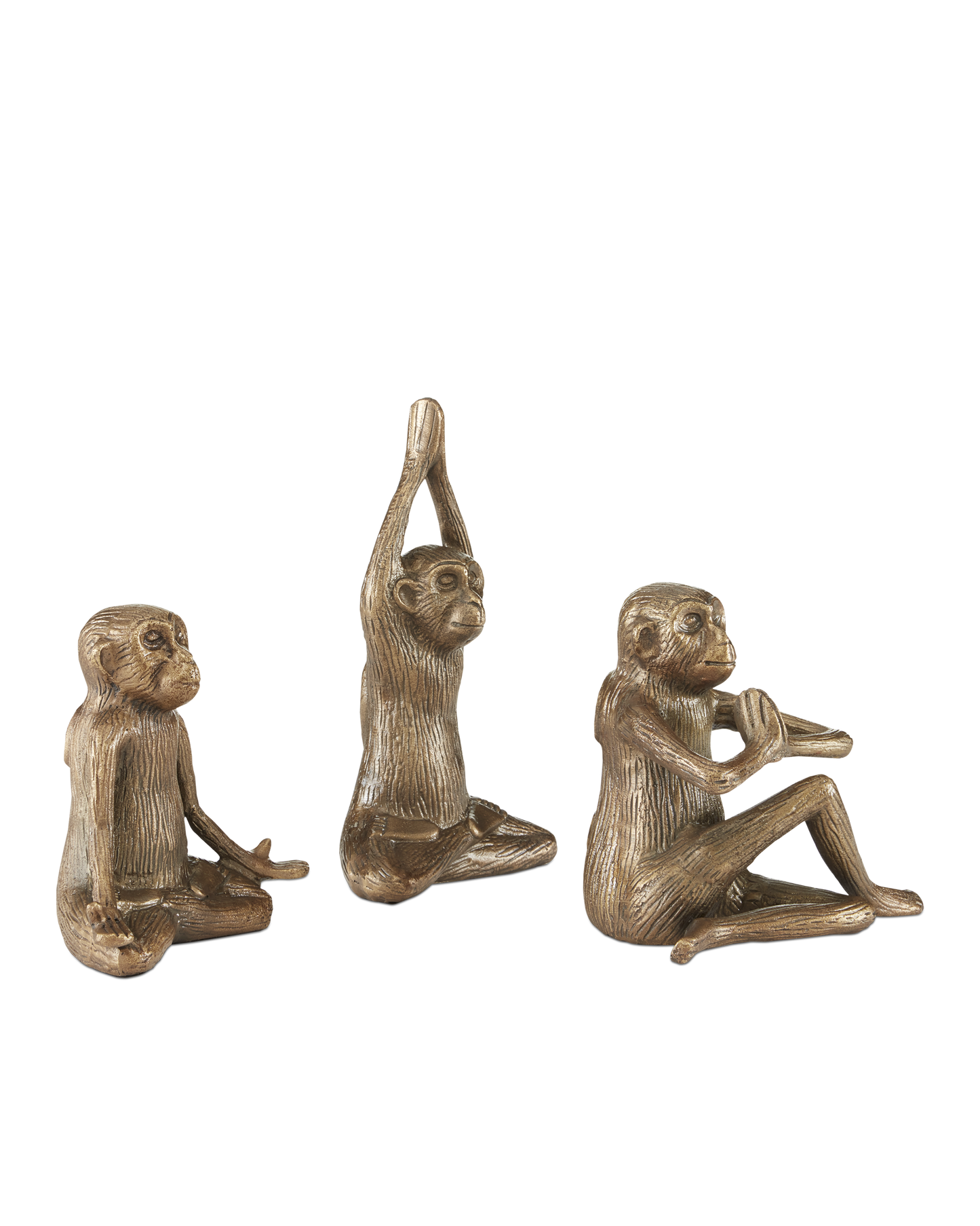 The characters in the Zen Brass Monkey Set are practicing an ancient art form as they take great care in making their gestures. But this doesn't mean the trio of gold sculptures in an antique-brass finish isn't seriously cute! They are made of cast aluminum with striations along their surfaces that mimic fur. This and their expressions make these animal sculptures read as authentic.